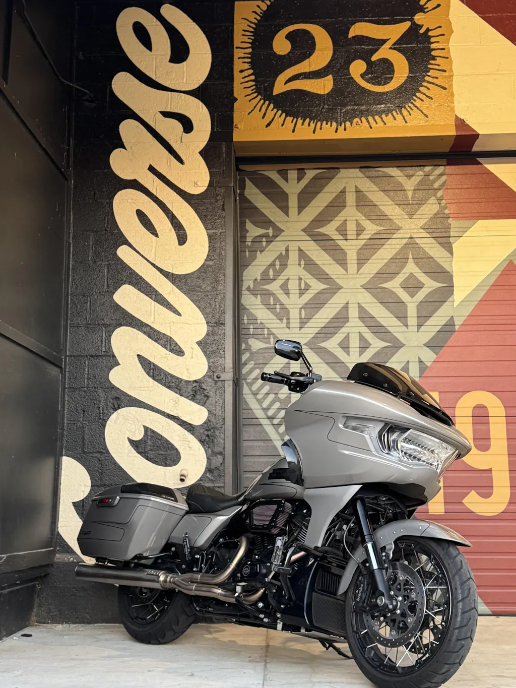 This is our bespoke exhaust system for the Harley Davidson Bagger line of motorcycles. The Baggers are awesome bikes, but their stock exhaust system leaves so much sound and performance on the table. Our complete exhaust system will give your Bagger about an 8% boost in power over stock, while maintaining a level of fit and finish that is on par or better than what Harley Davidson delivered from the factory!